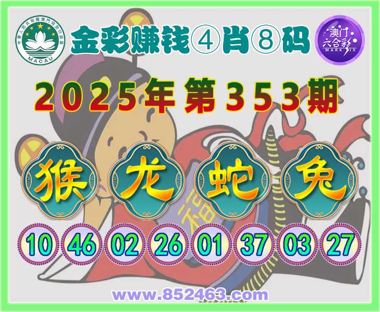 353期:【金彩赚钱】 🧤④肖⑧码🧤【猴龙兔】开:蛇01